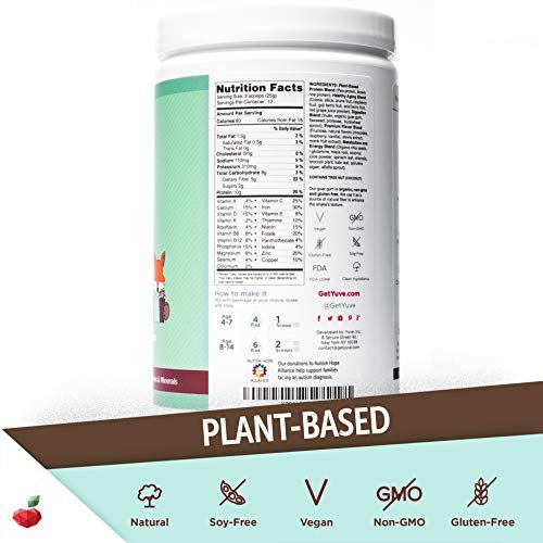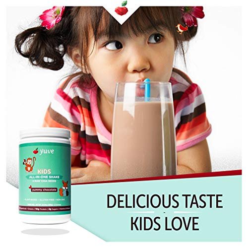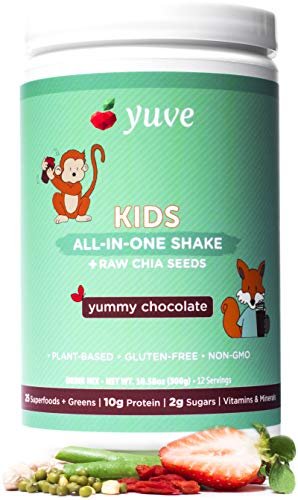 ?? ONLY REAL INGREDIENTS & BALANCED NUTRITENTS. Developed in the US for children, Yuve All-in-One shake has the right amount of protein and fiber for different ages. Each serving offers 5-10g plant-based protein and 25+ superfoods including raw chia seeds, goji and acai berries, kale, spirulina, chlorella, cocoa, and others. Sweetened with stevia and organic raspberry, it doesn??t have an artificial aftertaste.